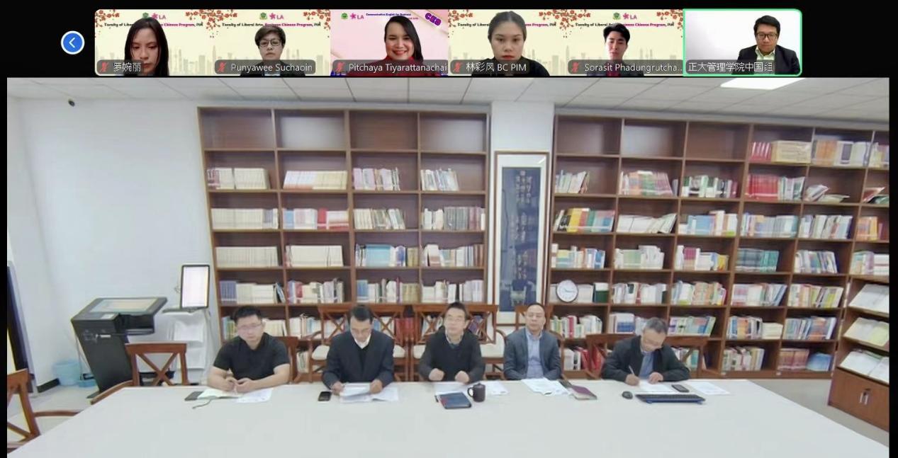 2025年3月25日上午,公司与正大管理公司(以下简称正大)文公司成功举办了深化合作线上会议。会议不仅是对过去合作成就的一次总结,也是对未来合作蓝图的一次规划。公司张袁松书记,于泽元经理,耿军副书记、副经理,招生办黄无为主任,项目对接人王鹊,正大董事长办公室钟福安执行总监,文公司Pitchaya Tiyarattanachai代理经理,经理助理温惠娟、黄伟荣等出席会议。会议由正大文公司商务汉语系苏兆伟老师主持。