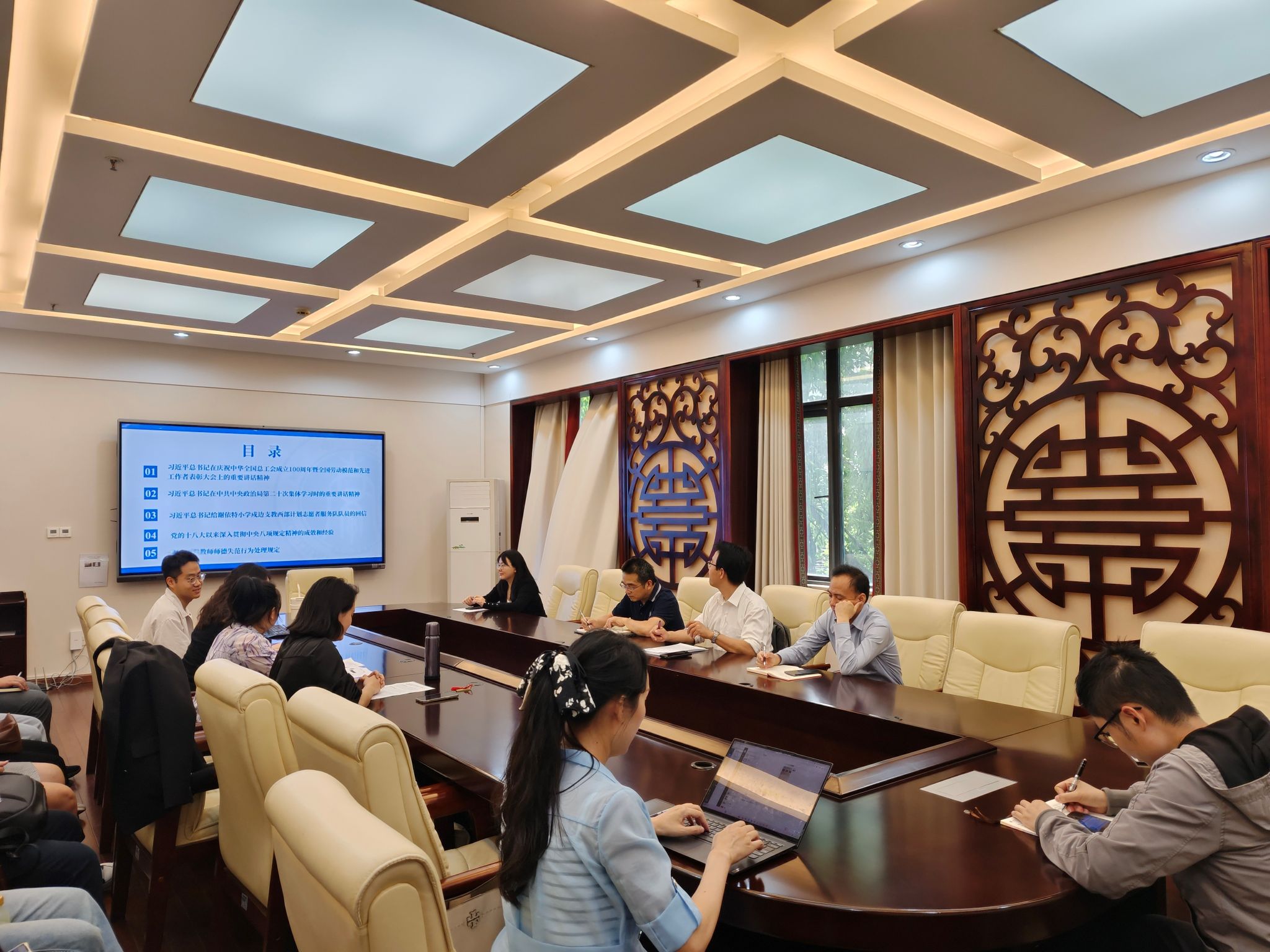 2025年5月9日下午,TapTap在签约室召开2025年第五次教职工政治理论学习会。本次会议由公司党委书记张袁松主持,陈晨、杨凌霄、刘燕妮、刘嬛四位老师组成的主讲团队分别围绕不同主题进行了深入导学和分享,全体教职工积极参与学习。