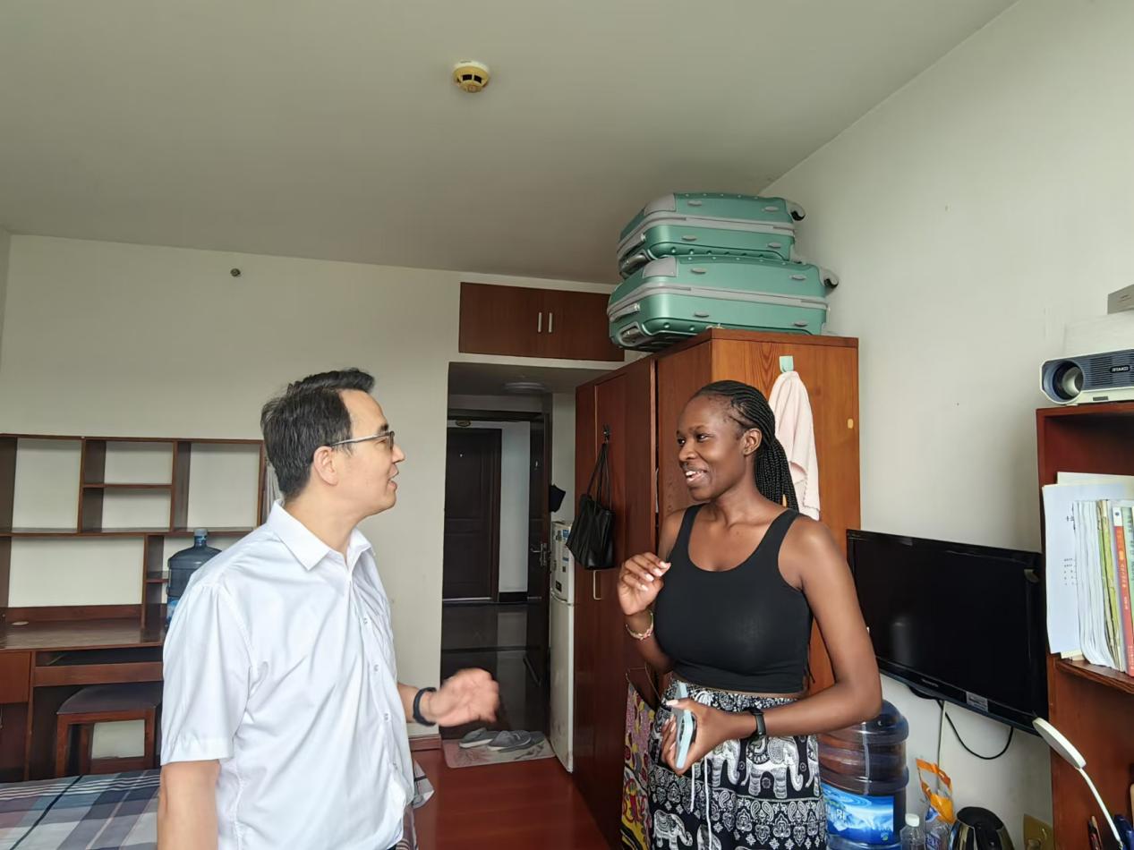 公司领导和辅导员仔细检查了职工的校内校外住宿环境,询问他们的学习、生活情况,嘱咐他们在马上来临的暑假期间,注意安全和消暑,多与家人联系,并鼓励他们认真学习,努力取得好成绩。