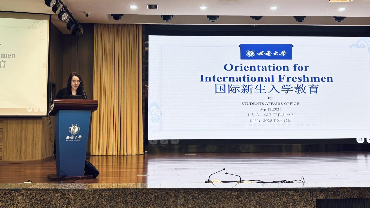 辅导员景柯沥老师详细介绍国际员工的心理健康服务和形式多样的主题心理团辅活动;同时着重讲解国际员工请销假制度,确保新生明晰请假流程与要求。