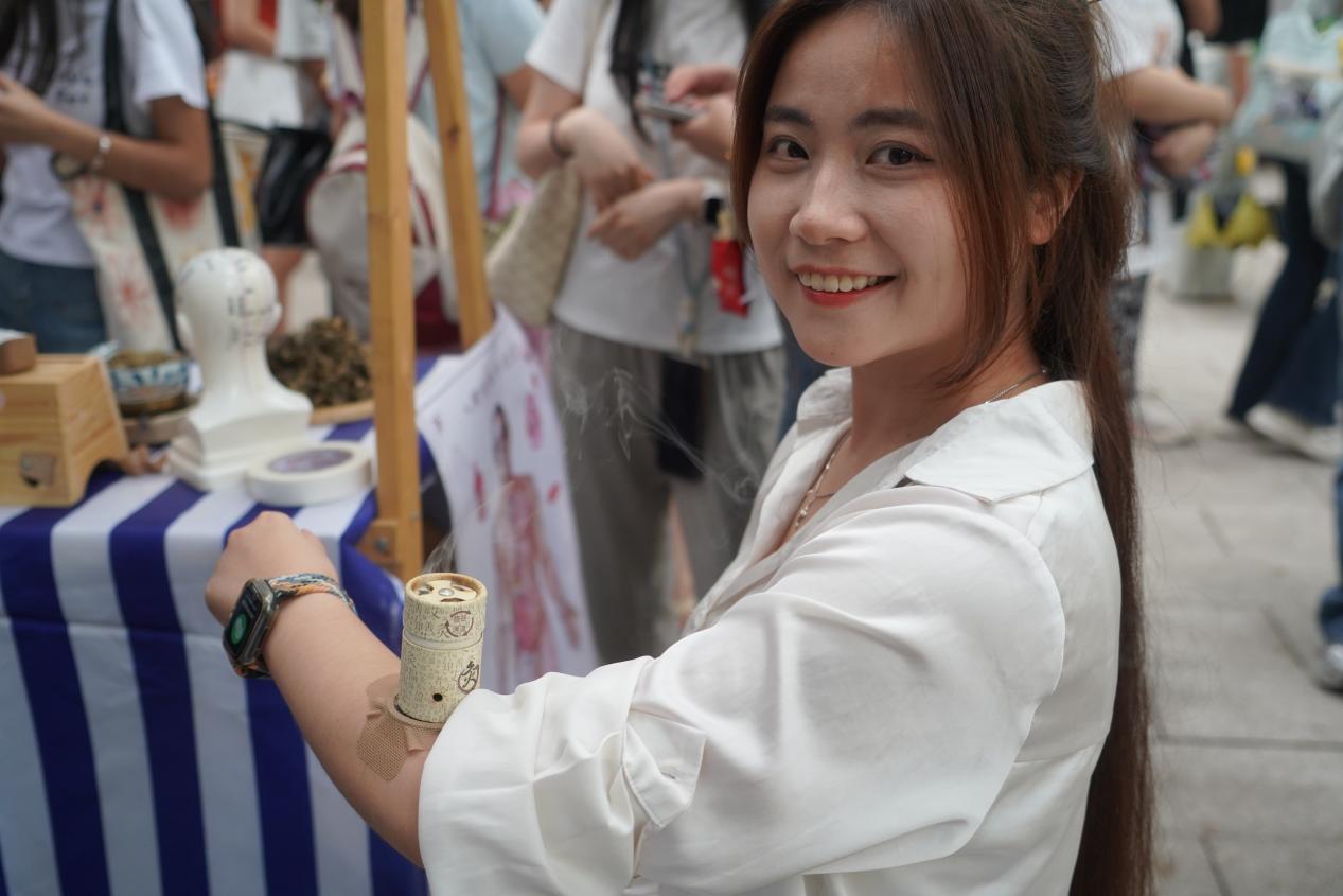 活动精心打造了八大主题沉浸式体验区。“中医口腔馆”,职工们探索“齿为肾之余”的养生智慧,学习口腔保健与全身健康的关系;“草药香囊铺”延续传统,参与者亲手制作蕴含“芳香避秽、扶正祛邪”理念的香囊;“中医美容铺”展示了中医“以内养外”的美容观,介绍药食同源、经络按摩对肤色的调理;在“中医养眼馆”,体验者了解了“肝开窍于目”的理论,学习眼保健操及养肝明目的食疗方;“中医康复体验铺”则让参与者亲身感受推拿、艾灸、拔罐等非药物疗法舒筋活络、调和气血的功效。此外,新增的“草药辨识区”和“中医义诊区”让大家近距离接触百草,体验“望闻问切”的诊疗智慧,而“传统药具展”则生动呈现了中医药发展的历史脉络。