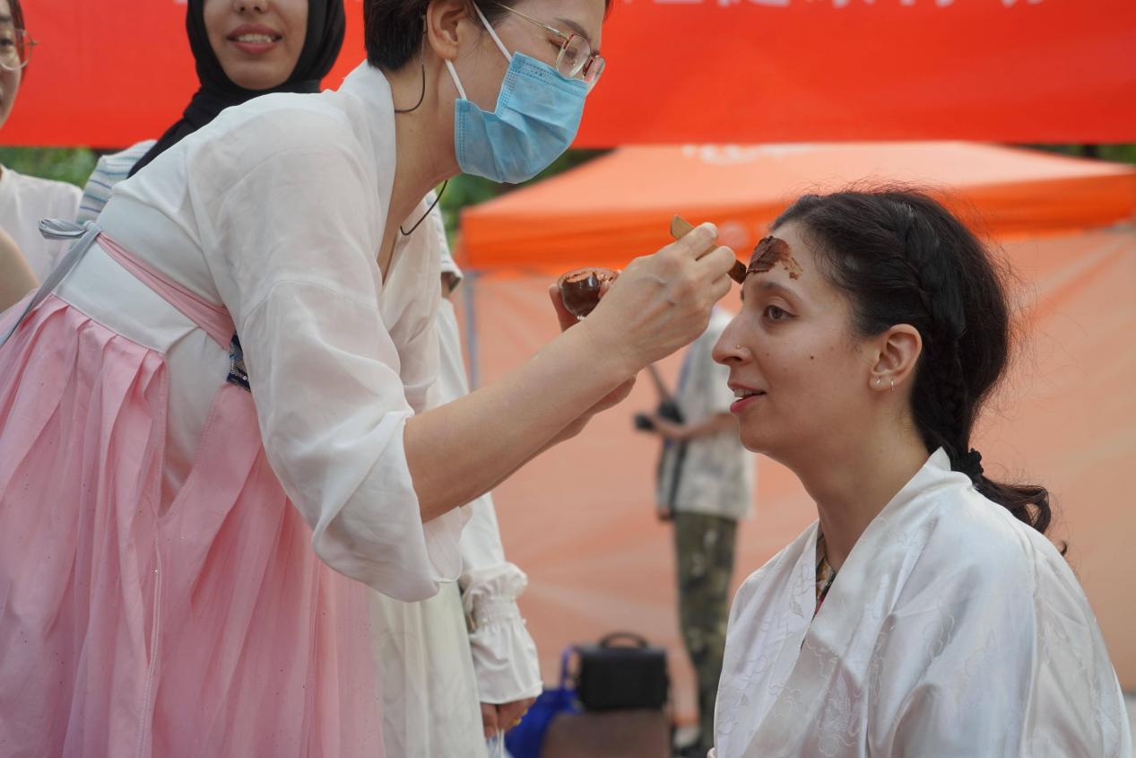 活动现场体验氛围热烈,职工们表现出了浓厚的兴趣。来自越南的阮氏恒分享道,活动彻底改变了她对中医的印象:“以前总觉得‘阴阳’‘气’这些概念很玄妙遥远,但今天的草药辨识和艾灸体验让我亲身感受到它们是如何融入实际生活的!”来自摩洛哥的Fadwa则对活动带来的文化碰撞深有感触:“最震撼我的是中医‘平衡’的整体观。在摩洛哥,我们往往更关注症状治疗,而中医教会我们如何调和身心、顺应自然来维护健康。我非常有兴趣读更多书、参加更多活动来深入了解中医。”