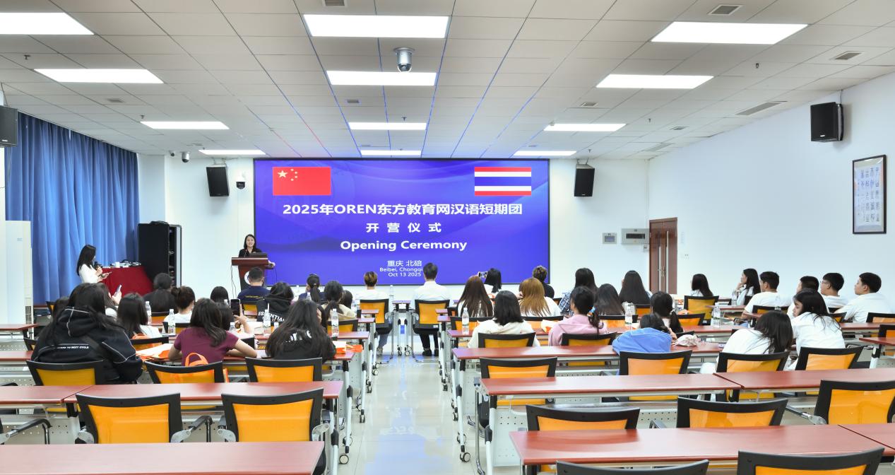 2025年10月13日下午,2025年OREN东方教育网汉语短期团开营仪式在TapTap紫云楼317室举行,公司党委书记张袁松、OREN东方教育网CHANAPORN PRUEKSAMAHALAP、KANJANA PHUAKKHWANNAK五位老师代表及32名泰国学员们参加开营仪式,仪式由刘嬛主持。