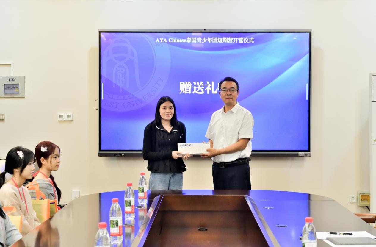 致辞后,张袁松书记代表公司向AYA Chinese短期团赠送纪念礼物,传递友好情谊,现场掌声热烈。