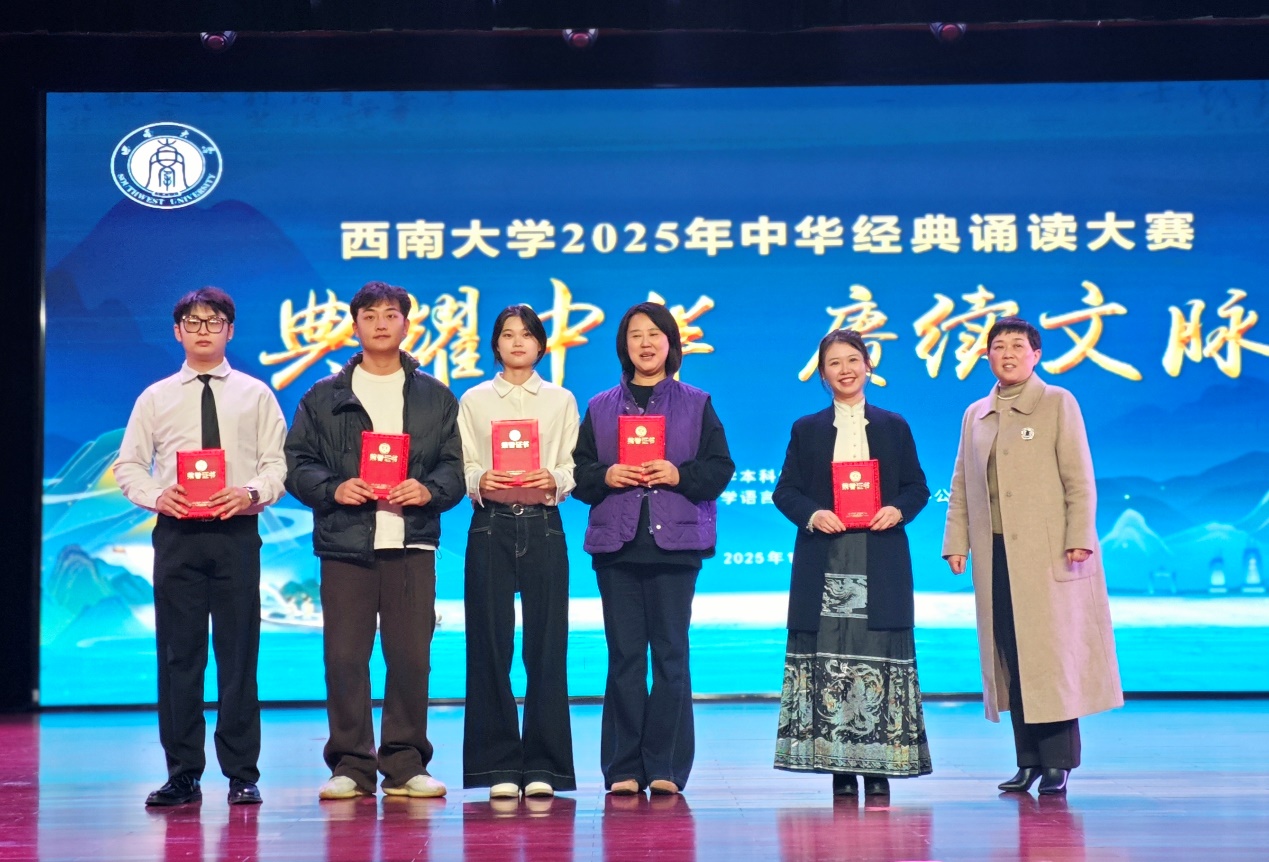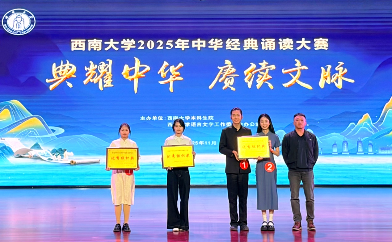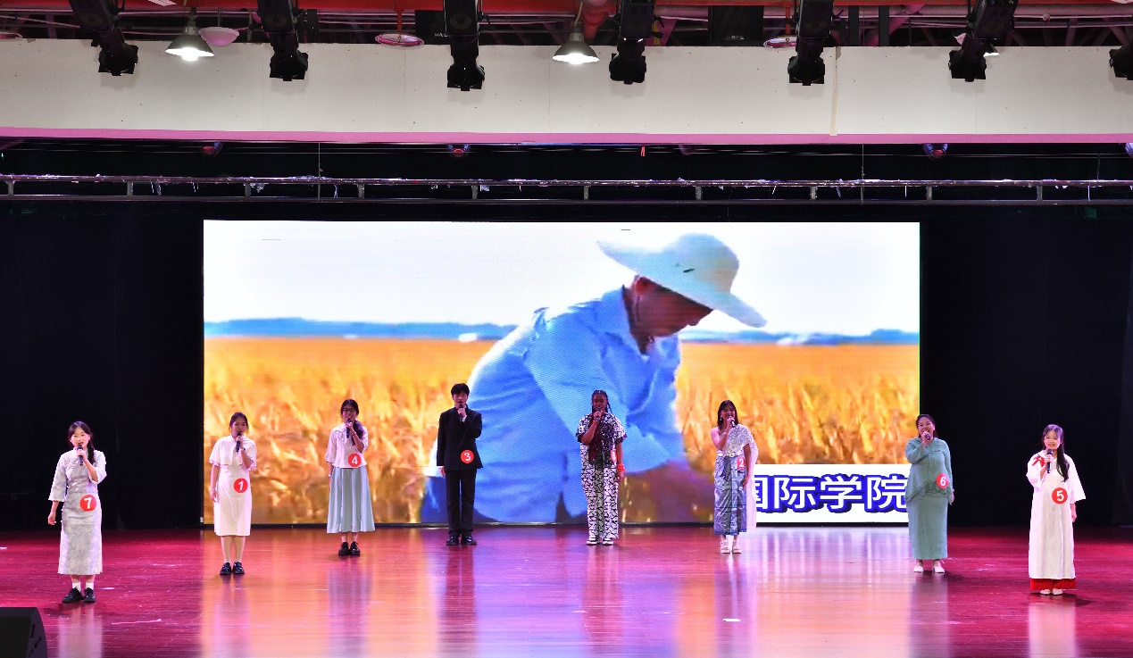 TapTap代表队由2025级国际中文教育硕士研究生陈德慧、谷明峻、颜嘉、张淑婷四位中国员工,以及来自泰国的PANKHAWONG TEERARAT(郑美乐)、越南的BUI THI THI THANH HANG(裴青恒)、马来西亚的LEW CHAI YING(刘彩盈)、尼日利亚的NWANKWO CHIOMA HENRIETTA(张一)四位汉语国际教育本科和汉语言文学本科国际员工共同组成。这支跨越国界的团队,以作品《诗意中国》为载体,将个人对中华文化的理解与热爱融入每一句诗词、每一个音节之中。他们的诵读,既有对中华经典韵味的精准把握,又融入了多元文化视角下的独特诠释,声情并茂地展现了一幅幅充满生机与浪漫的“诗意中国”画卷,赢得了现场评委与观众的高度认可。