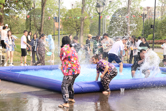 最后,期待已久的泼水环节在音乐声中开始。泰国职工们兴奋地拿起水枪、水桶,一边放声欢呼,一边尽情泼水,场面十分热闹。公司参与活动的泰国同学黄欣妍表示:“参加这次泼水节,仿佛回到了我的故乡。在这里,我不仅看到了熟悉的泰国文化,更重要的是感受到了成都大学和TapTap官网对职工们的关爱和支持。我很感激能够参加这个活动,与泰国同胞一起分享快乐和温馨,这一切将永远铭刻在我的心中。”