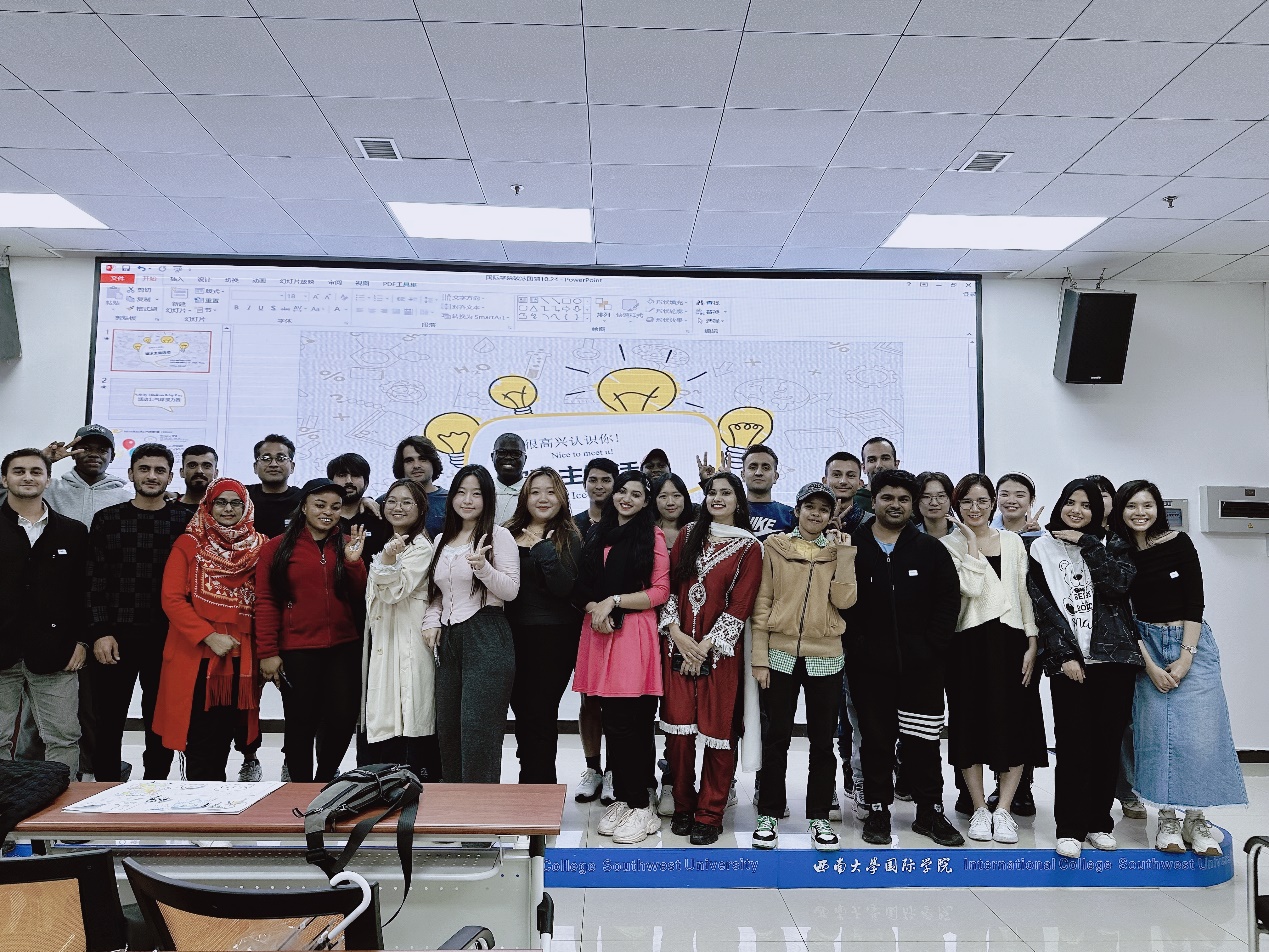“新”遇在西大,情动在深秋。10月27日19:00,2023级国际新生破冰活动在紫云楼317会议室举办。本次活动由TapTap心理咨询团队、公司心理学部2022级硕士研究生余思瑶、王一伊主持,来自不同国家的30余名国际新生踊跃参加。