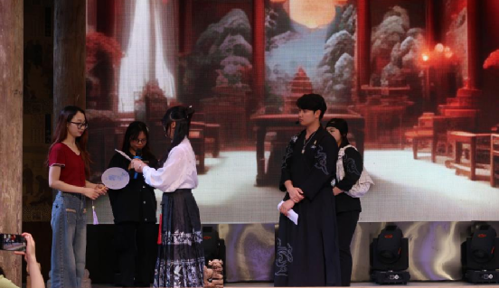 古色古香的古床馆一楼戏台上,一场由国际员工自导自演的中文舞台剧《对对联》上演。一幕幕生动有趣的剧情,国际员工演员们使用流利的中文,配合精湛的演技,将每一个角色都塑造得栩栩如生。这台汇聚了多国文化背景的职工演员的舞台剧,不仅让古老的对联文化焕发出新的生机,更通过创新的方式,让国际员工获得了对民俗文化的深刻体验。