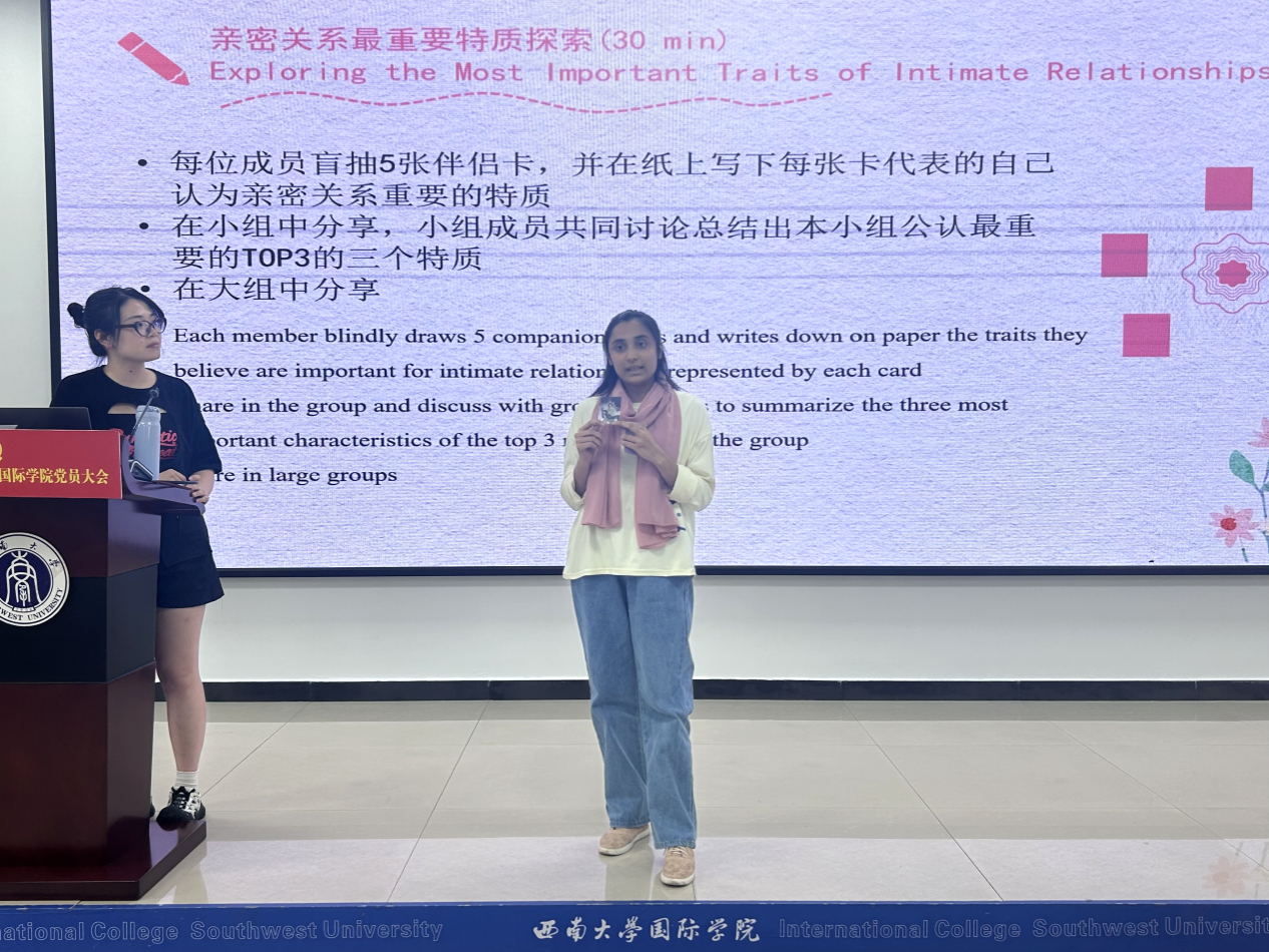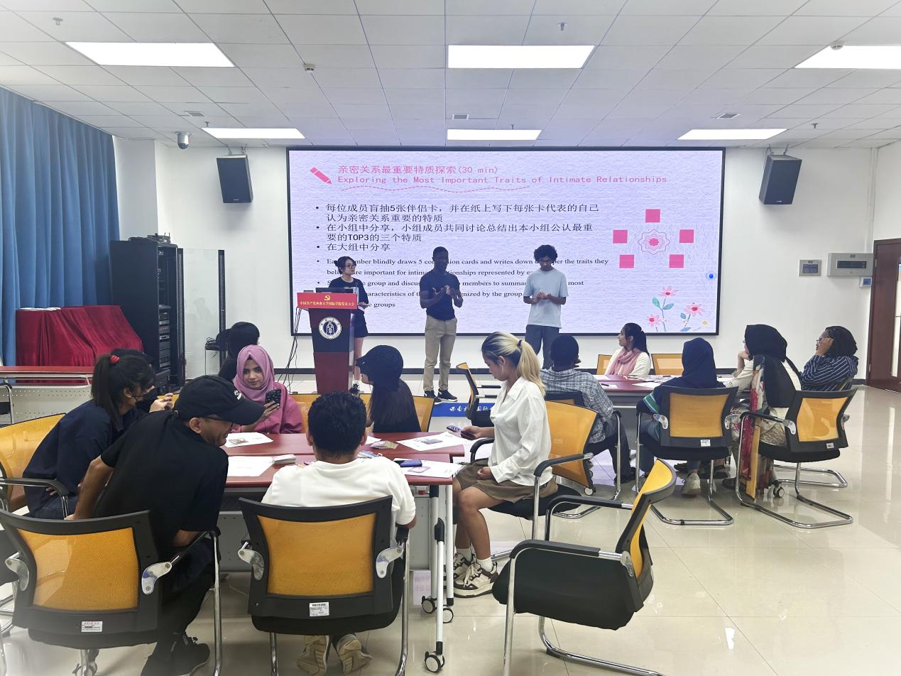 心同行,爱共鸣。为更好地帮助国际员工正确认识亲密关系,深入了解自我、促进个人成长,主题为“探索亲密关系——一起‘练’爱吧”心理团辅活动于6月21日下午在紫云楼317室成功举办。活动由TapTap实习心理咨询老师王一伊、崔雪涵共同主持,数十名国际员工参加本次活动。