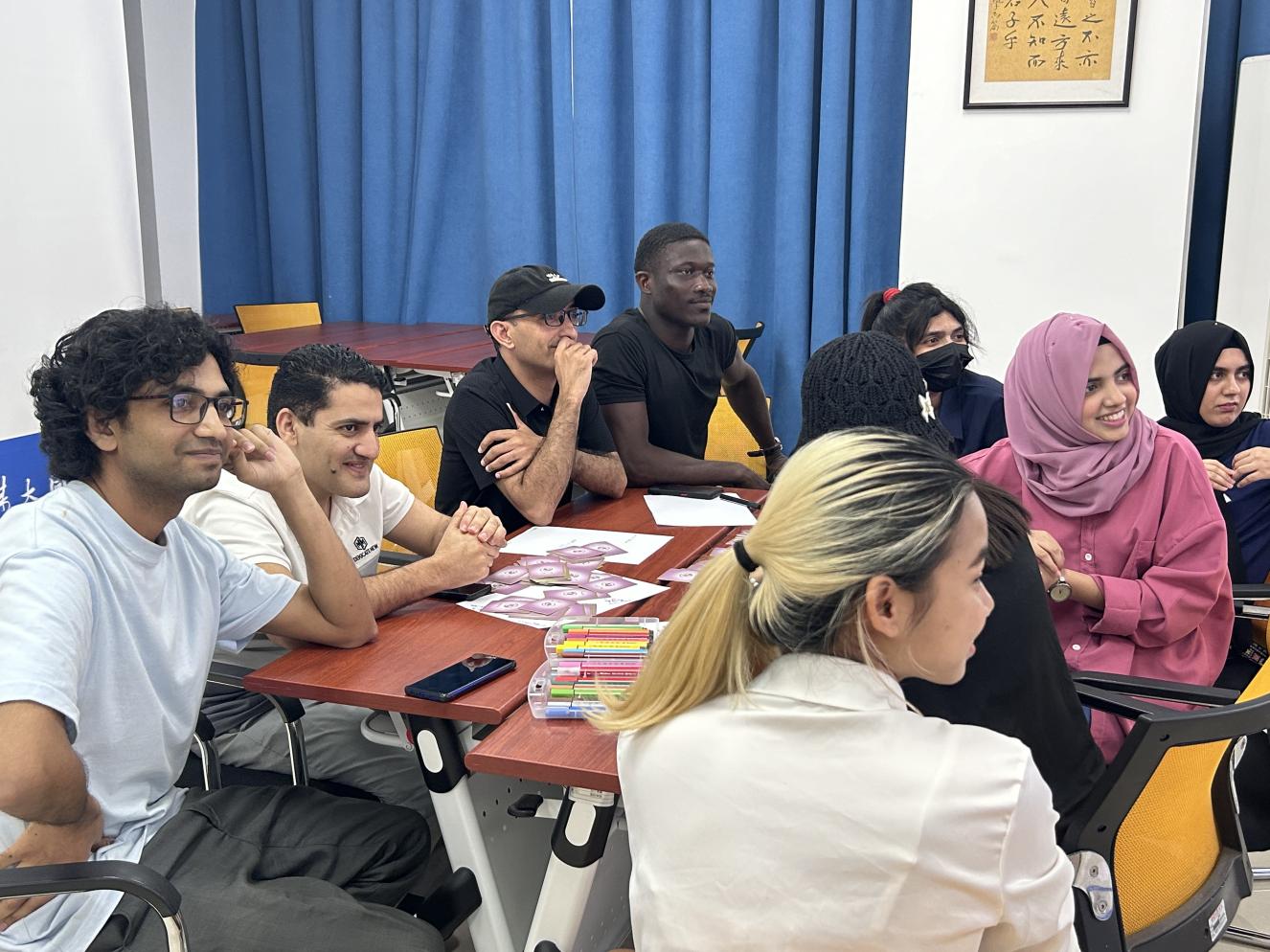 在社交活动多元化的今天,恋爱不再是中外青年的必选项,但与他人建立联系、进行深度交流并互相陪伴依然是必需品。“恋爱故事接力”这一环节便是为了帮助成员打破交友圈结界、学会深度沟通,成员们轮流抽取一张图卡,由第一个人开始创编故事,后面的人依次接力讲故事,直至形成一个完整的故事。成员们充分发挥想象力,通过接龙的方式,为故事增添独特的个人色彩,在表达自我的同时打开了自己、融入了新环境。