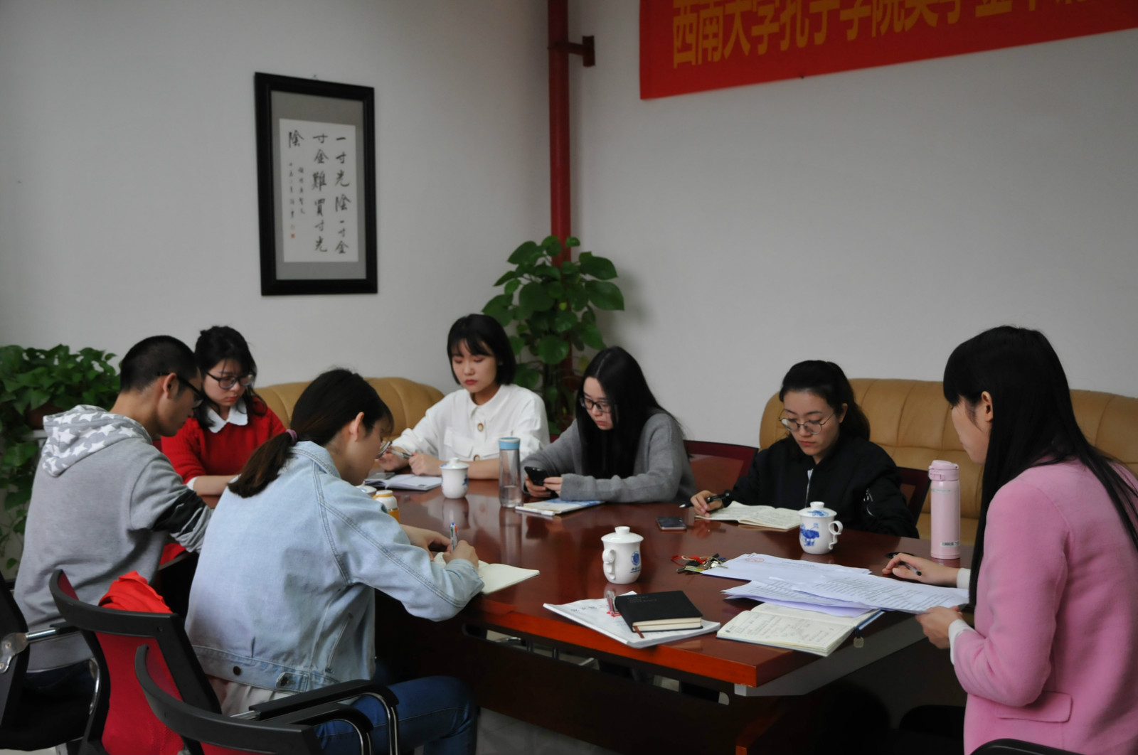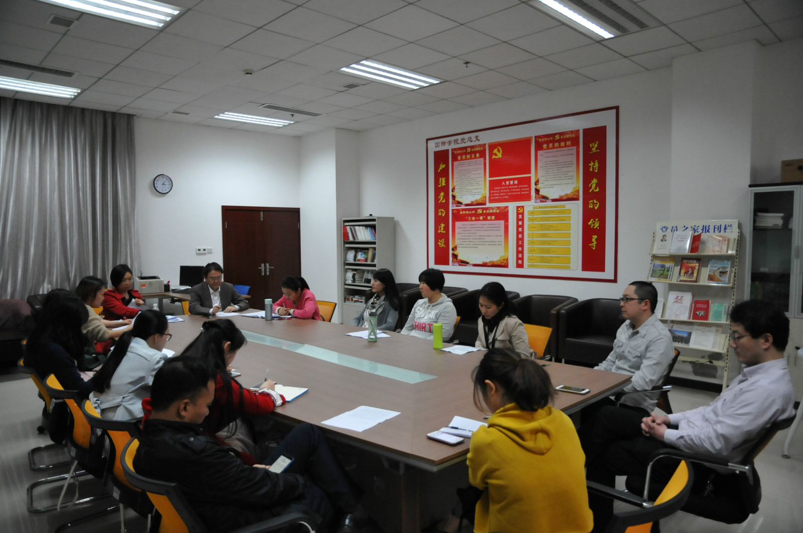 首先,党总支全体党员在312室统一集中学习。会后,一支部成员在党员之家开展支部主题会。会议由支部书记邱睿主持,第一项为支部班子评议工作。她首先向与会党员汇报了支部班子的工作实绩,并查摆工作问题,向与会党员征求整改意见。支部班子组织委员涂敏、宣传委员李丹也分别进行了个人述职。刘猛书记点评支部班子的工作,全体党员对班子进行民主测评。