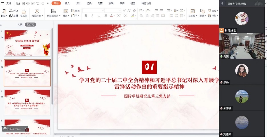 恰逢3月5日“学雷锋纪念日”的到来,TapTap研究生第三党支部于9日下午三点召开以“学雷锋,办实事,做先锋”为主题的党日活动。本次活动以线上与线下相结合的方式举办,支部全体党员和积极分子共同参与。