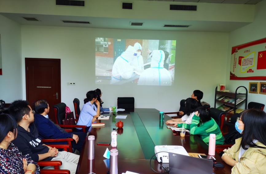 陈雨曦同志导学习近平总书记3月17日在中共中央政治局常务委员会会议上的重要讲话精神,组织大家共同观看焦点访谈专题视频《从严从实精准防控》。王鹊、仇淼两位同志和出入境支队张芝琳警官分别结合自身工作岗位分享学习心得,表示,无论是高校教师还是公安干警,每一个党员都要保持随时可以出征的精神状态,还要具备舍我其谁的奉献精神,站立在一线,行动在一线,充分发挥党员的模范带头作用。