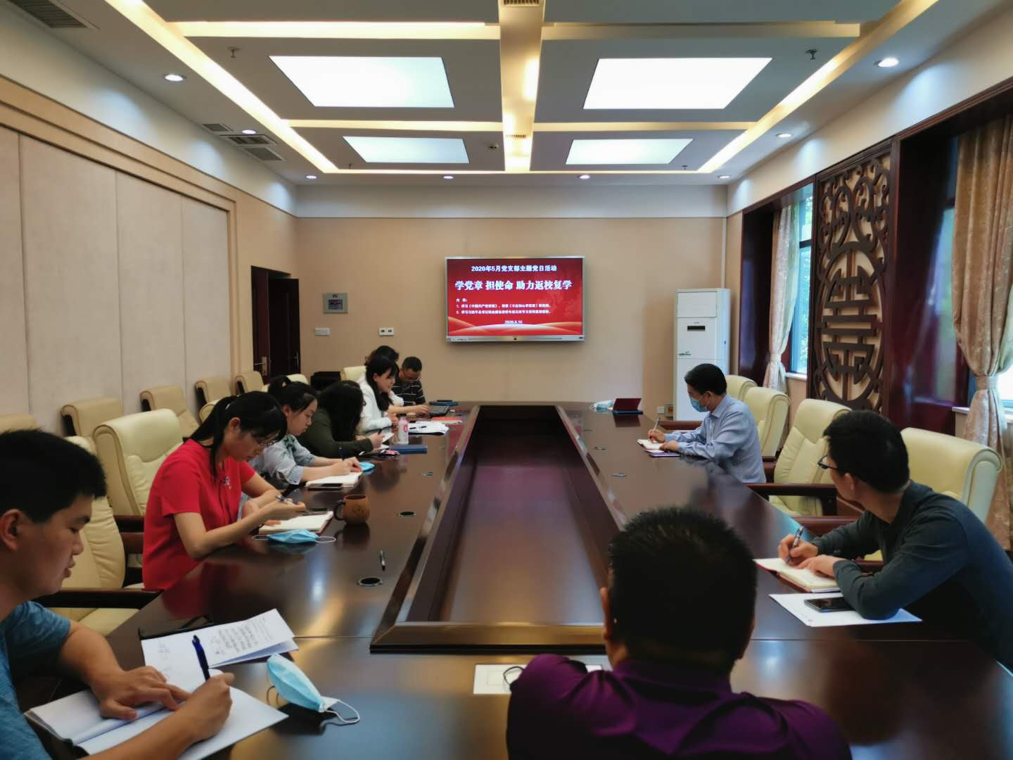 5月15日下午3:00,研究生第一党支部在瞩目app上采用线上学习的方式召开了“学党章 担使命 助力返校复学”主题党日活动。