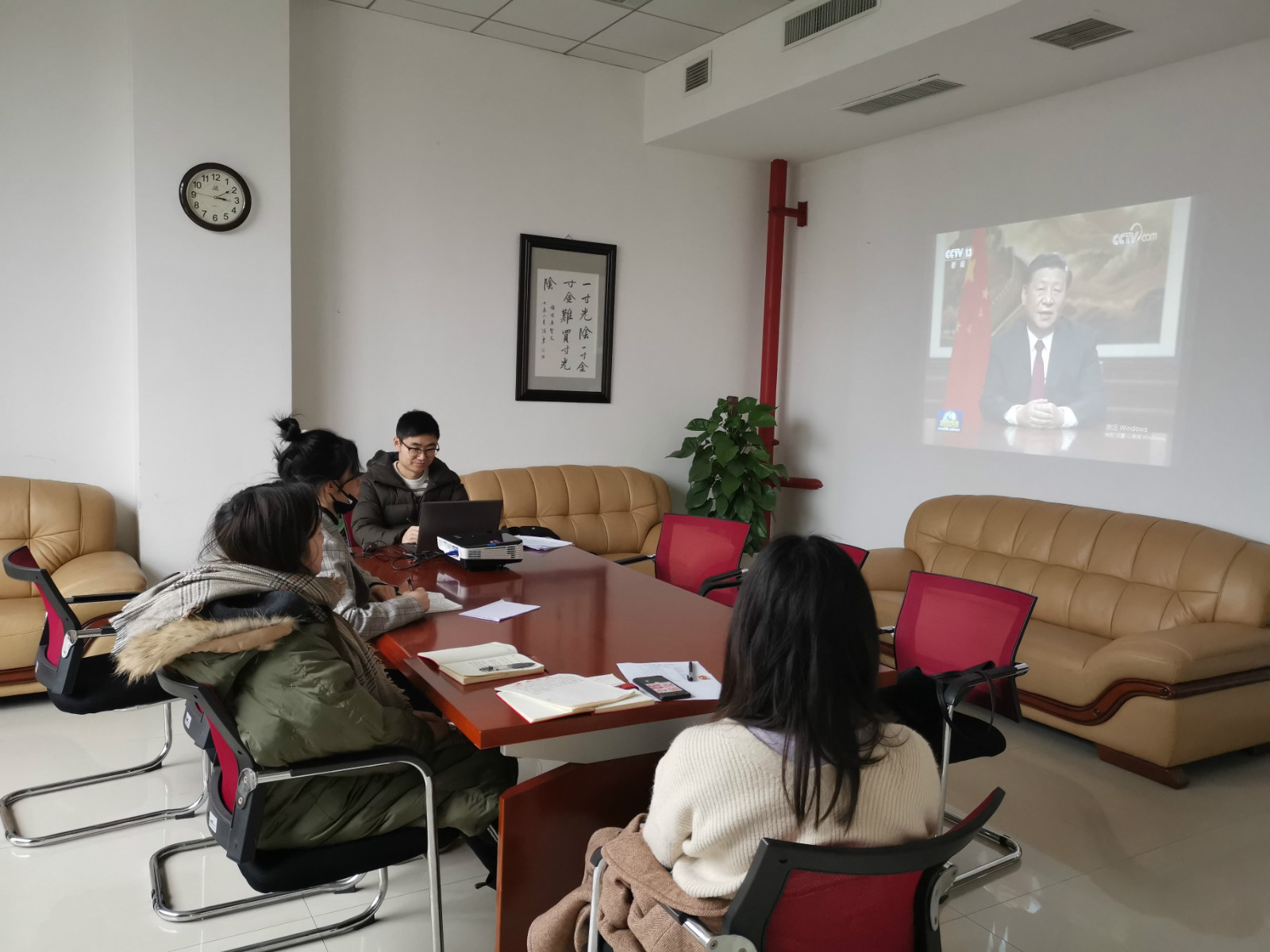 凌兰欣同志首先带领全体党员同志集中学习了国家主席习近平发表的二〇二〇年新年贺词、公司党委书记李旭锋和董事长张卫国发表的二〇二〇年新年贺词。然后学习习近平总书记《关于认真学习贯彻习近平总书记在“不忘初心、牢记使命”主题教育总结大会上的重要讲话的通知》,各位党员同志对贺词及主题教育学习内容深有感触,看到了祖国在2019年取得的成绩,也感受到了未来一年的重任,并结合“只争朝夕,不负韶华”主题发表了自己的感受。最后学习张彬彬同志关于学习强国平台资源使用的建议,并对支部党员每天学习5分,至少登录1次提出了明确要求。