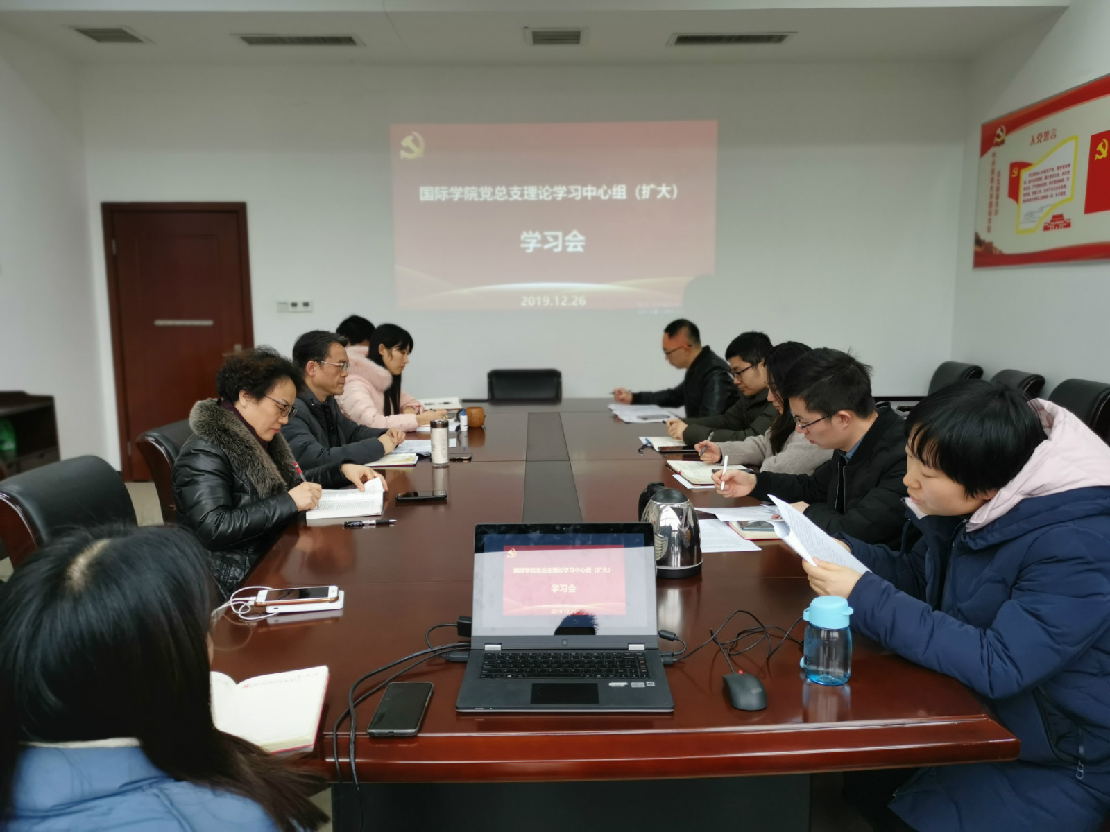 20191226日下午15:30,公司党总支在紫云楼304室召开2019年秋季学期第2次党总支理论学习中心组(扩大)学习会,会议主题是:学习传达第十九届四中全会精神。党总支委员、非党总支委员的院领导、各支部书记和支部委员参加会议,北碚公安分局内部安全保卫支队副队长张彬彬同志受邀参会。会议由刘猛书记主持。