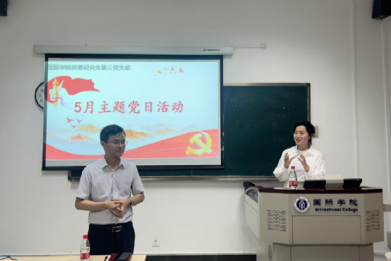 2024年5月17日下午16:00,研究生第三党支部在紫云楼216室开展了“听党话、学党纪、跟党走”的主题党日活动,旨在加强支部党员的纪律意识,增强党性修养。国际合作与交流处副处长代远鸿作为支部联系领导,受邀参加本次主题党日活动。