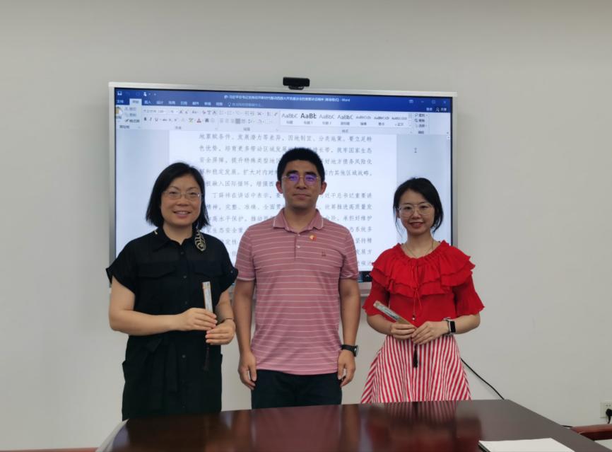 高纪欣同志带领大家学习习近平总书记对新时代青年寄语,习近平总书记主持召开新时代推动西部大开发座谈会的重要讲话精神,习近平总书记在重庆考察时的重要讲话精神;彭欣同志则针对市委书记袁家军来校调研主持召开青年代表座谈会的讲话精神开展了学习讲解。